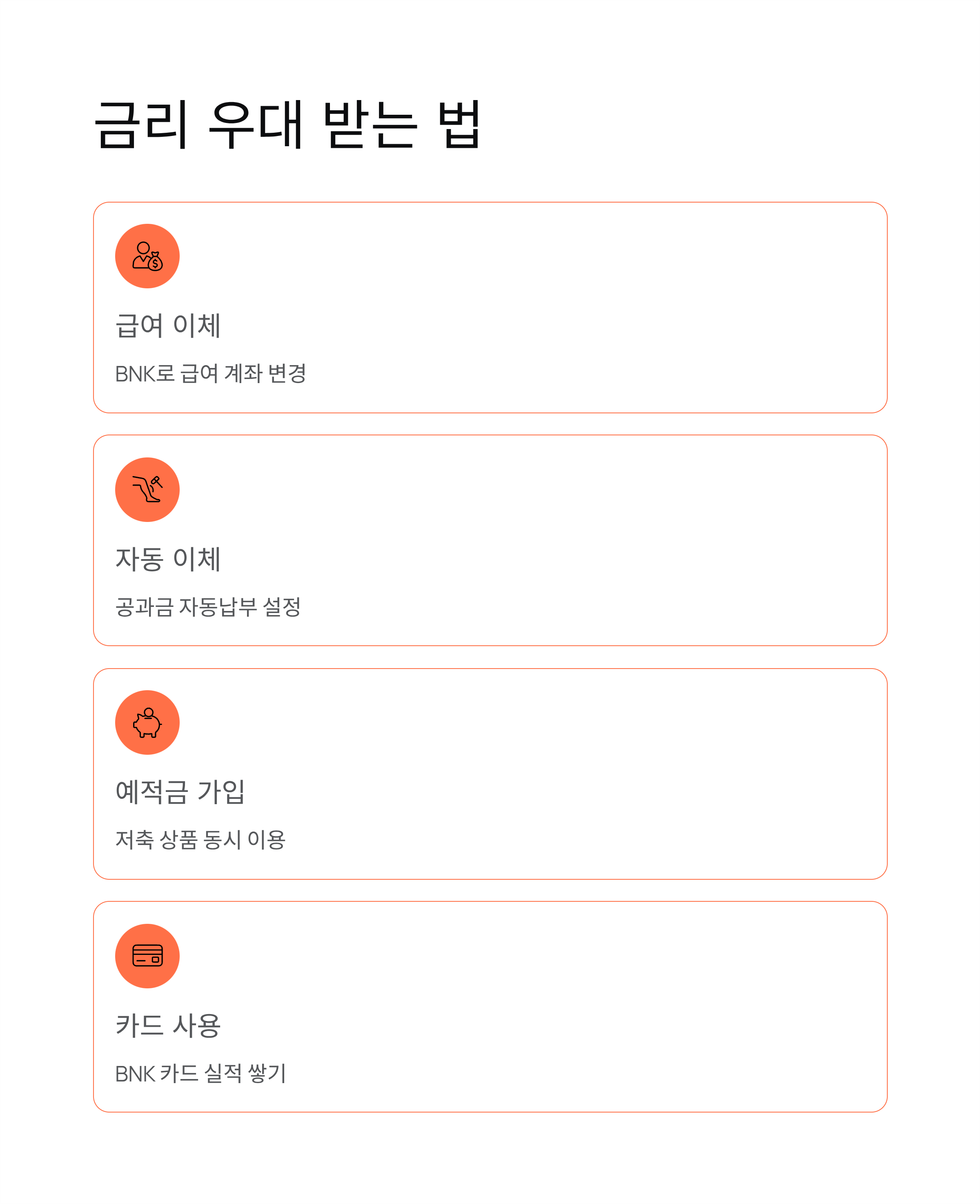 - 우대 금리: 급여이체, 자동이체, 예·적금, 카드 이용 등 BNK경남은행 거래 실적에 따라 우대금리 적용 가능